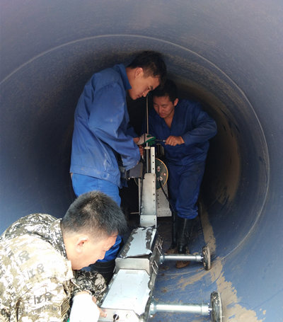 7月13日,為保證我市“廣北水庫水質(zhì)提升工程”管道焊接質(zhì)量,工作人員冒著高溫鉆進(jìn)直徑1.6米的管道內(nèi)進(jìn)行X射線焊縫無損檢測(cè)工作。據(jù)悉,當(dāng)日室外溫度達(dá)到38攝氏度,管道內(nèi)溫度近50℃。為防止高溫中暑,工作人員每次只能工作十幾分鐘,反復(fù)進(jìn)入操作。圖示照片工作人員服裝已全部被汗水浸透。