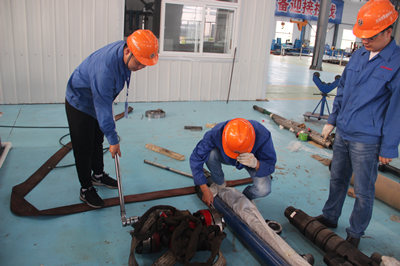 7月14日,2000T管材復(fù)合加載試臺(tái)位于有“桑拿間”之稱的二號(hào)實(shí)驗(yàn)室的坑道內(nèi)。圖示工作人員正在對(duì)石油套管進(jìn)行復(fù)合加載試驗(yàn),金屬不斷碰撞發(fā)出“咚咚咚”的聲音,讓高溫天內(nèi),人的心情更加煩躁。